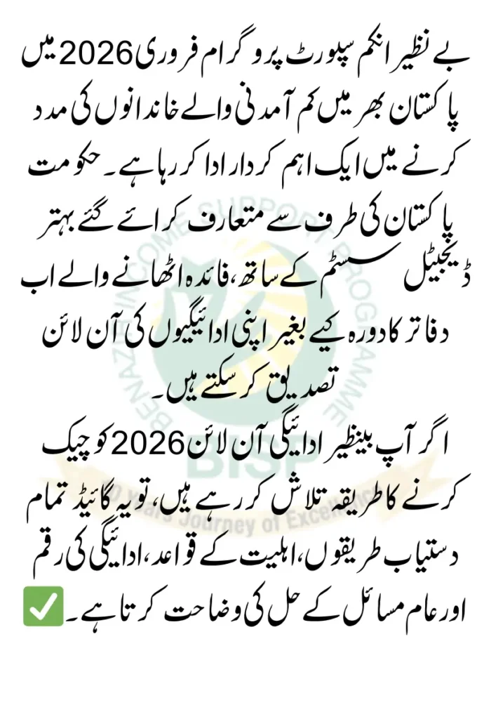 The Benazir Income Support Programme continues to play a vital role in supporting low-income families across Pakistan in February 2026. With improved digital systems introduced by the Government of Pakistan, beneficiaries can now verify their payments online without visiting offices.